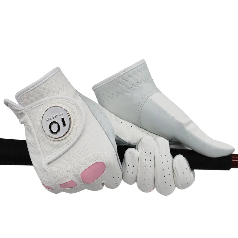2 Pack or 1 Pair Cabretta Leather Womens Golf Gloves with Ball Marker Left Right Hand Extra Grip Ladies Sizes S M L XL